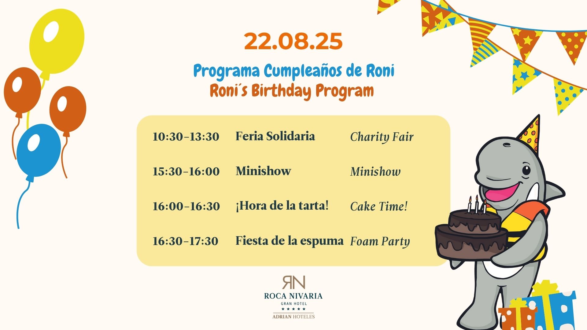 ¡No te lo pierdas! Ven con tu familia y celebra el cumpleaños de Roni en una jornada repleta de sorpresas y diversión. 💛